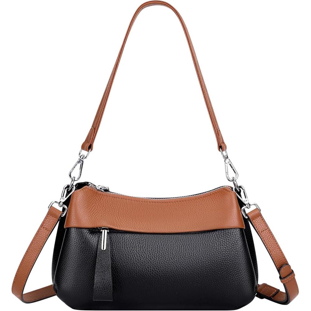 OVER EARTH Genuine Leather Crossbody Bags for Women Small Crossbody Handbag Shoulder Purses with 2 Detachable Straps(02-black/Brown)