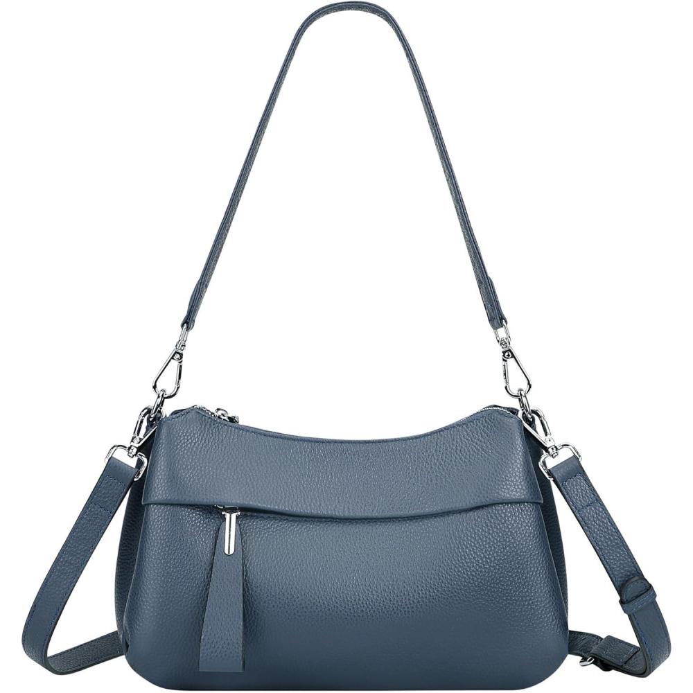 OVER EARTH Genuine Leather Crossbody Bags for Women Small Crossbody Handbag Shoulder Purses with 2 Detachable Straps(03-indigo Blue)