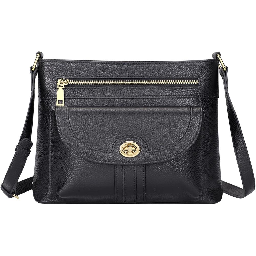 Over Earth Crossbody Bags for Women Leather Purses for Ladies with Multiple Pockets(Black Rp)