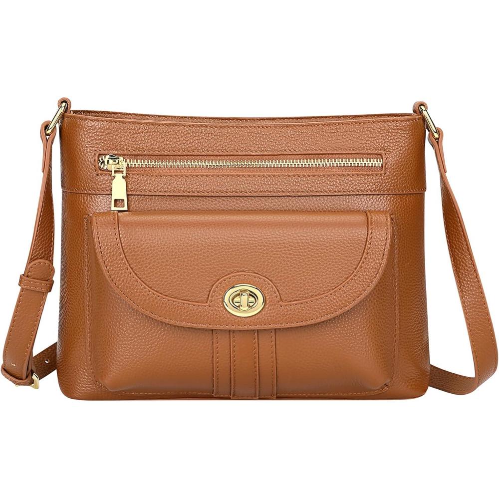 Over Earth Genuine Leather Crossbody Bags for Women Trendy Purses and Ladies Shoulder Handbags(Brown)