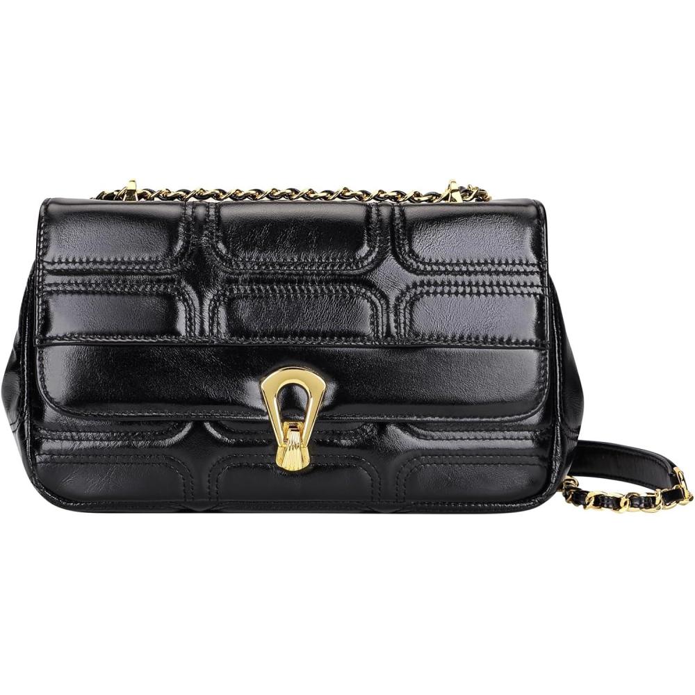 Over Earth Quilted Leather Handbag for Women Chain Crossbody Purse Trendy Shoulder Bags(Black)